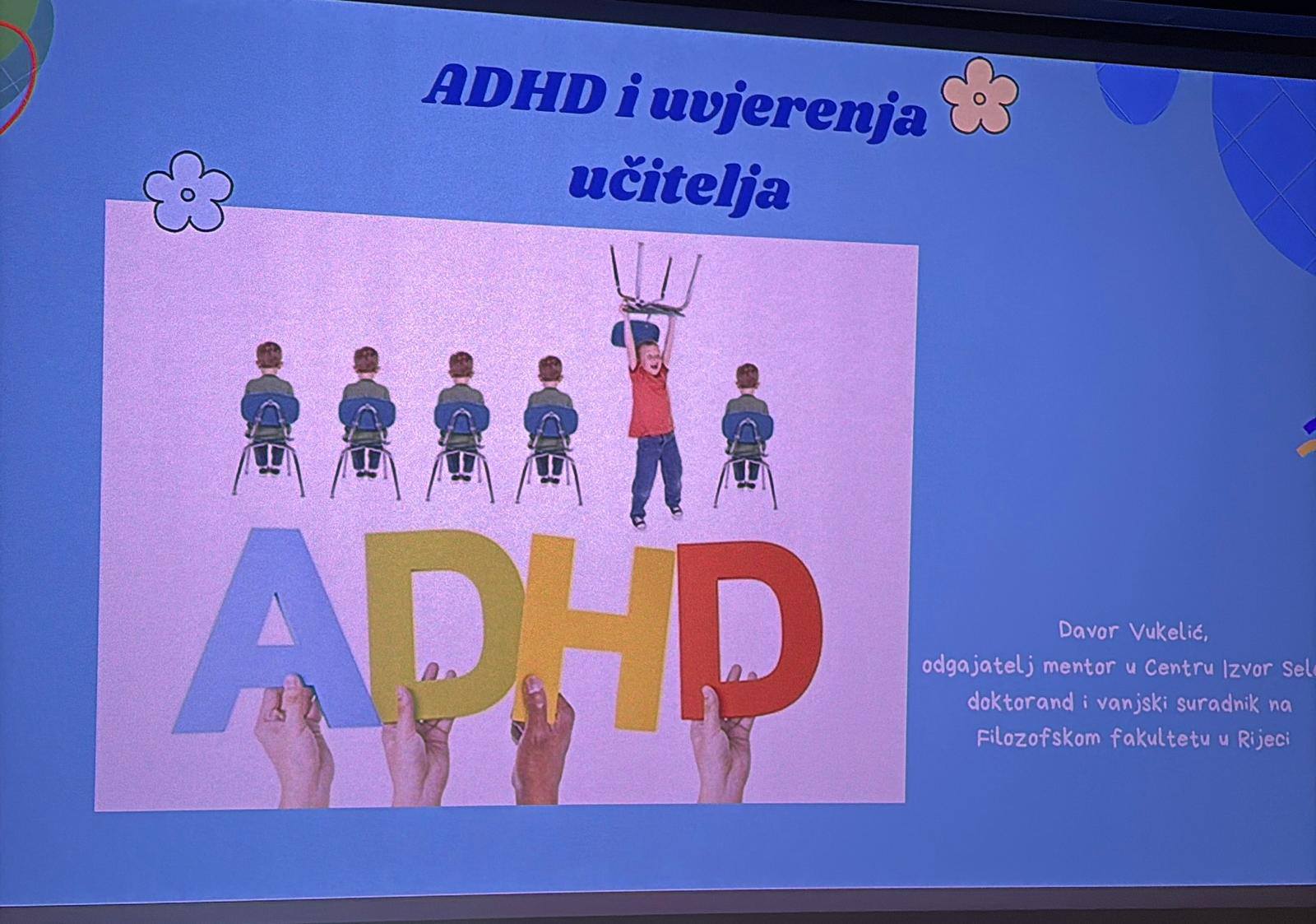 Stručno usavršavanje učitelja i stručnih suradnika kroz predavanje pod nazivom „ADHD i uvjerenja učitelja“ u Kinu Edison. Predavanje održava Davor Vukelić, doktorand na Odsjeku za pedagogiju Filozofskog fakulteta u Rijeci i odgajatelj-mentor u Centru Izvor Selce.